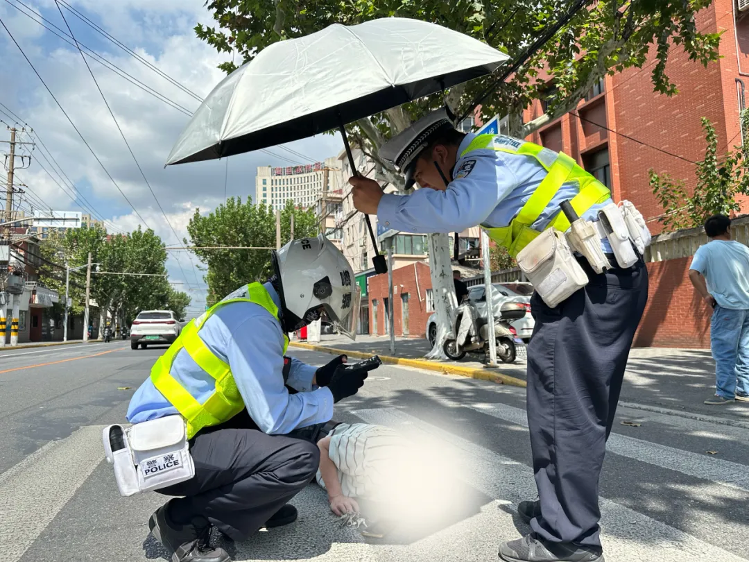 在隆昌路近河间路路口,年近八旬的朱老伯在过马路时突然因中暑而晕倒在斑马线上。民警沈佳成赶到现场时,朱老伯双腿蜷缩,表情痛苦。据朱老伯介绍,过马路时突然感觉不适,不小心摔倒了,但是摔倒后怎么也站不起来。