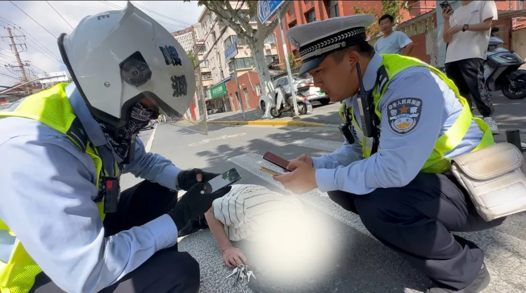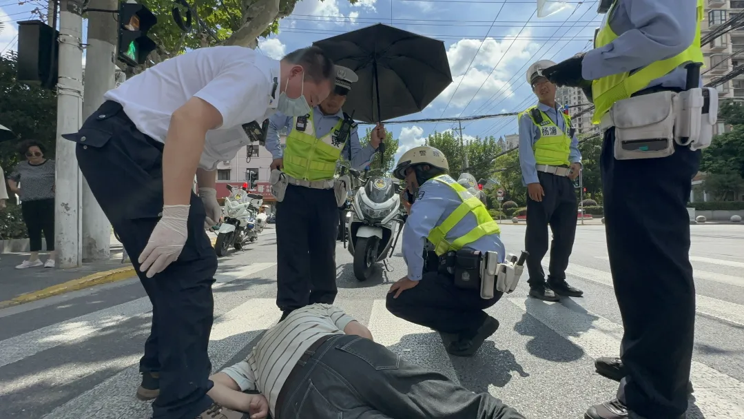 沈佳成观察四周后发现,虽然路口车流量不大,但不时有车辆经过,老人所处位置存在随时被轧伤的危险,民警当即使用对讲机呼叫同事支援,同时联系120急救中心请求尽快救援。